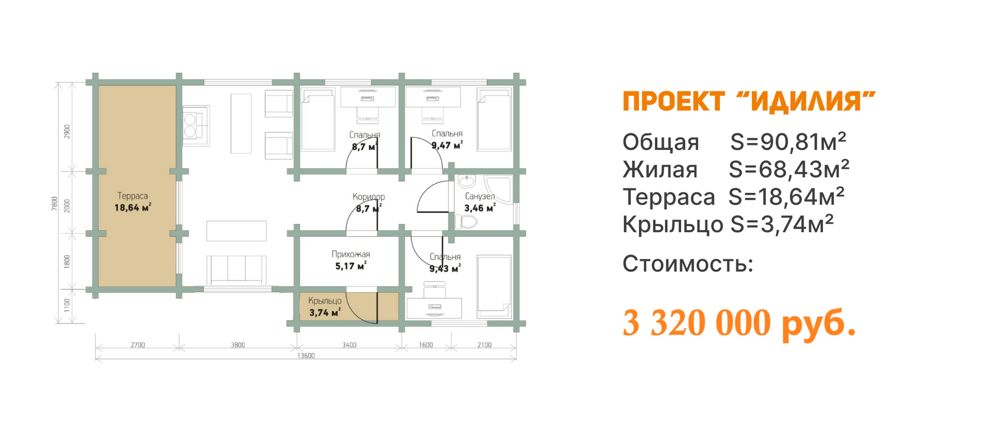 - Терраса с крыльцом по проекту;